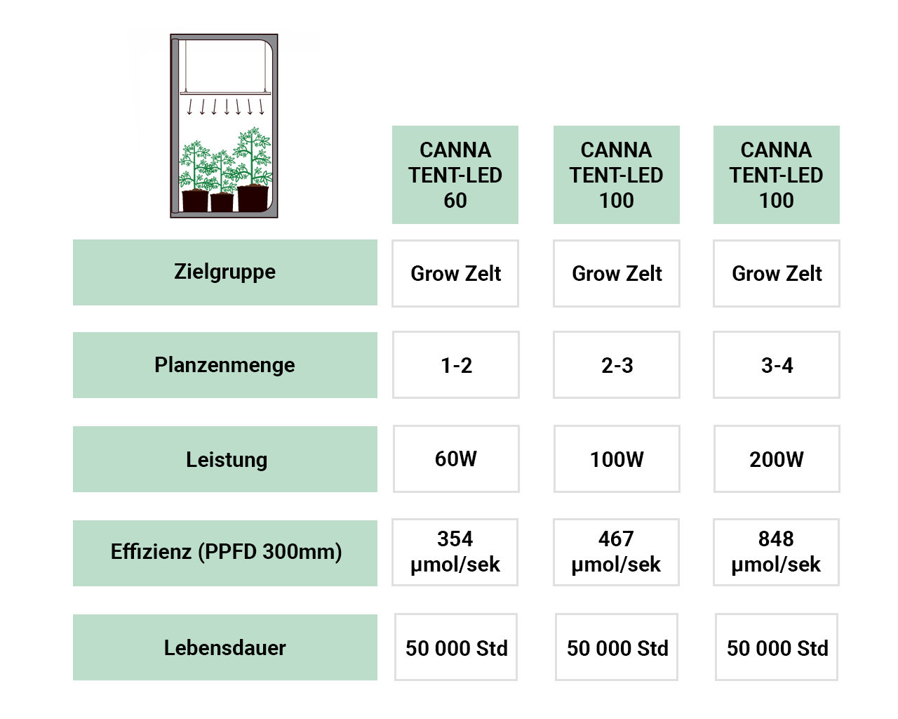 Erfahre hier alle wichtigen technischen Daten unserer CANNA GROW LIGHTS.