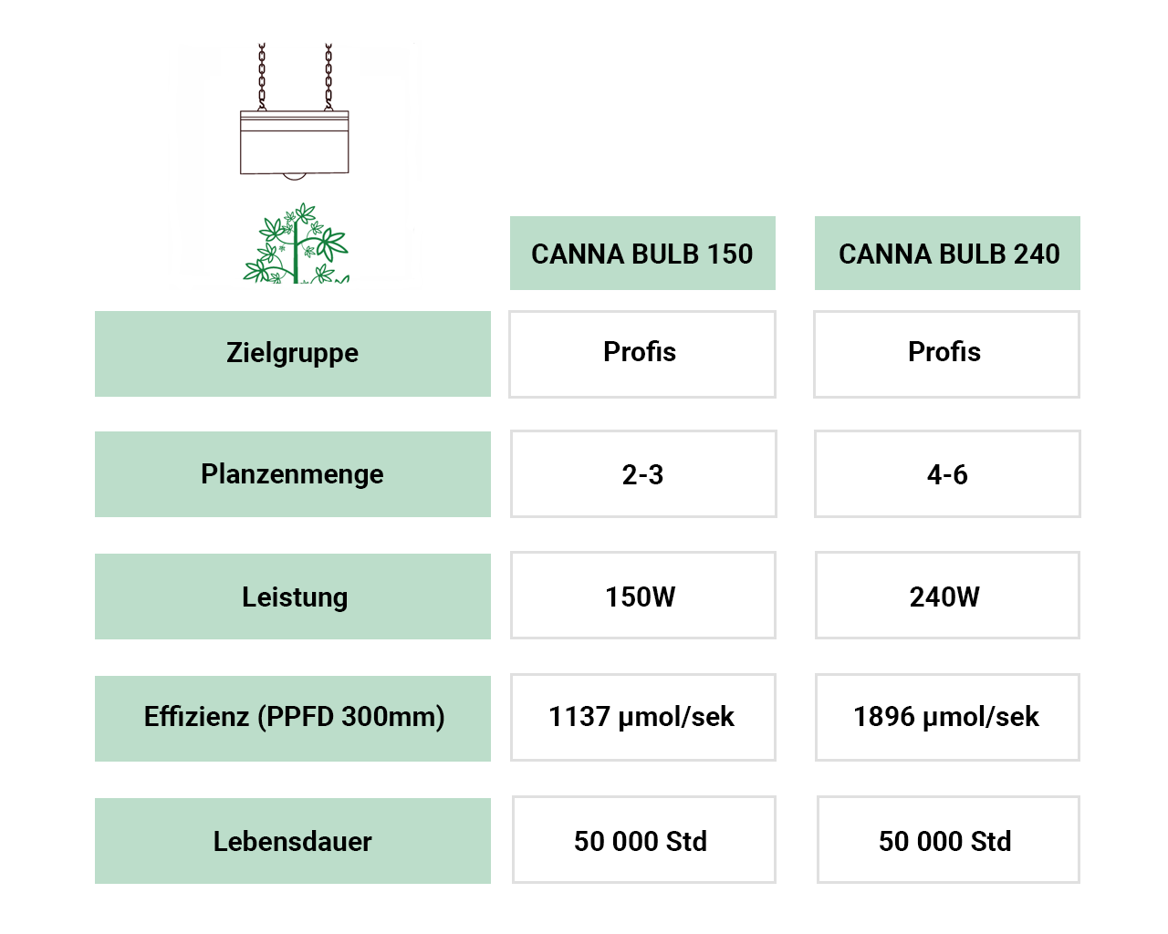 Erfahre hier alle wichtigen technischen Daten unserer CANNA GROW LIGHTS.