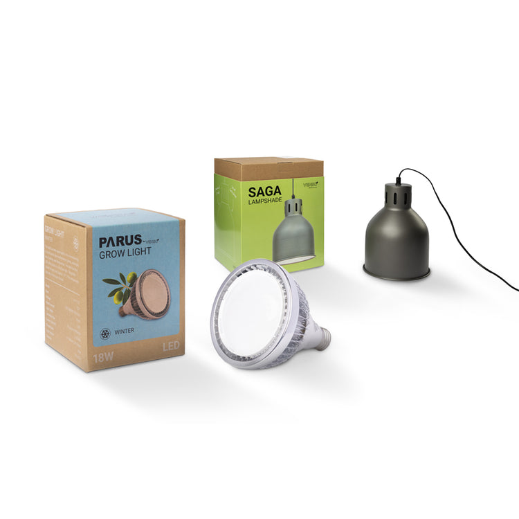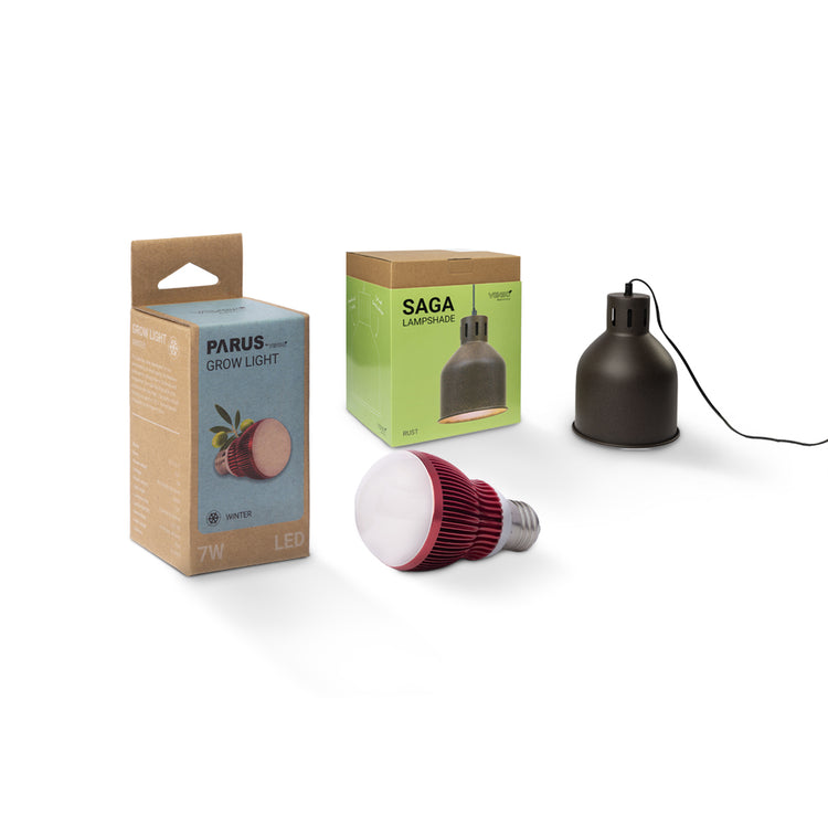 E27 Pflanzenlampe “winter” mit dem SAGA Lampenschirm im Vorteilspaket